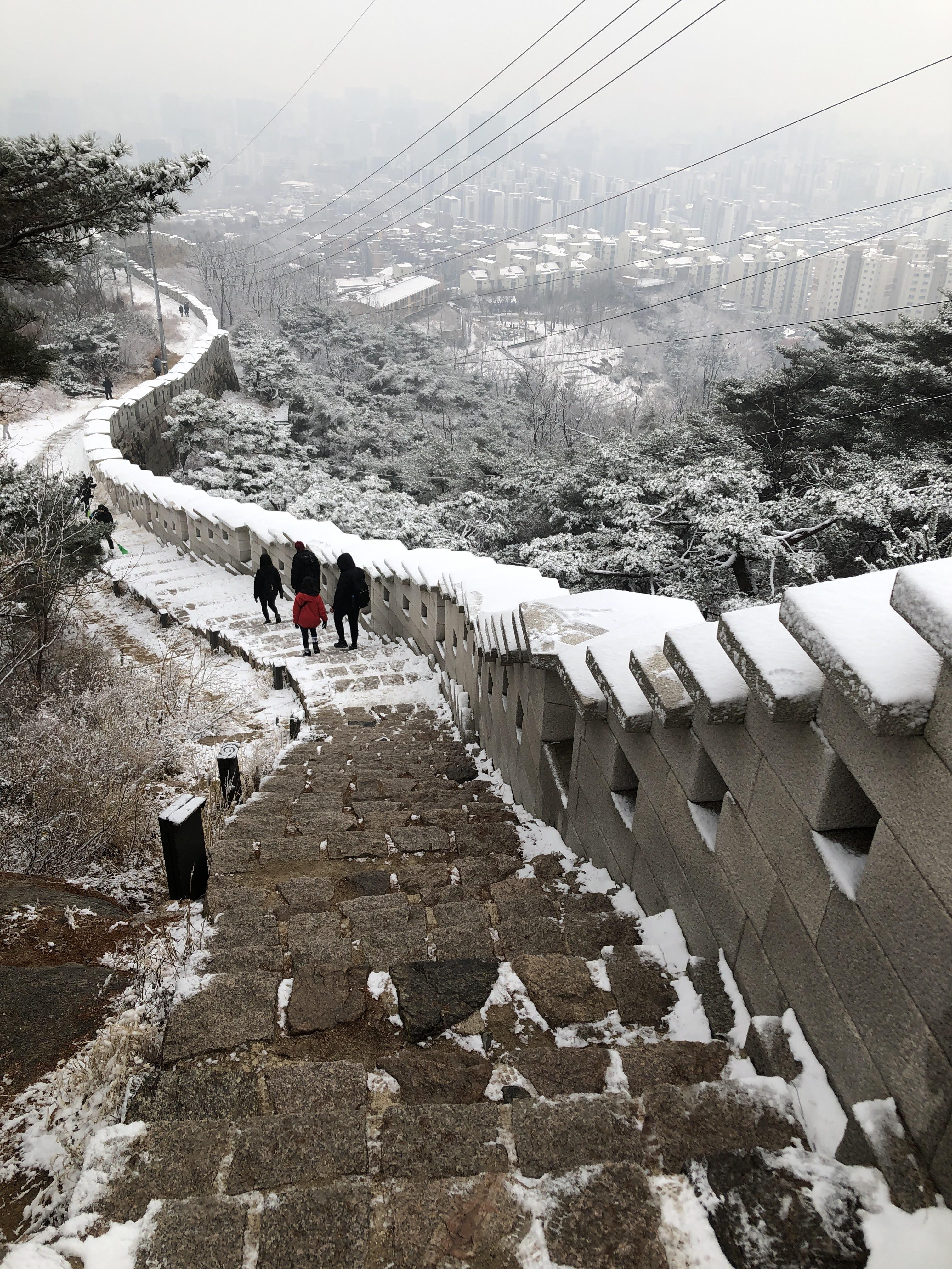 지난 주 일요일 인왕산에 다녀왔다. 날이 추웠지만 최근에 큰 일이 있었다. 머리가 복잡했다. 아침 일찍 집을 나서 버스에 올랐다. 창밖으로 눈이 내리고 있었다. 사직단에 내렸다. 오오. 광화문에서 직장 다닐 적에 종종 걷던 길이 몹시 반가웠다. 첫눈을 맞은 강아지처럼 설레는 마음이 올라오는 게 느껴졌다.