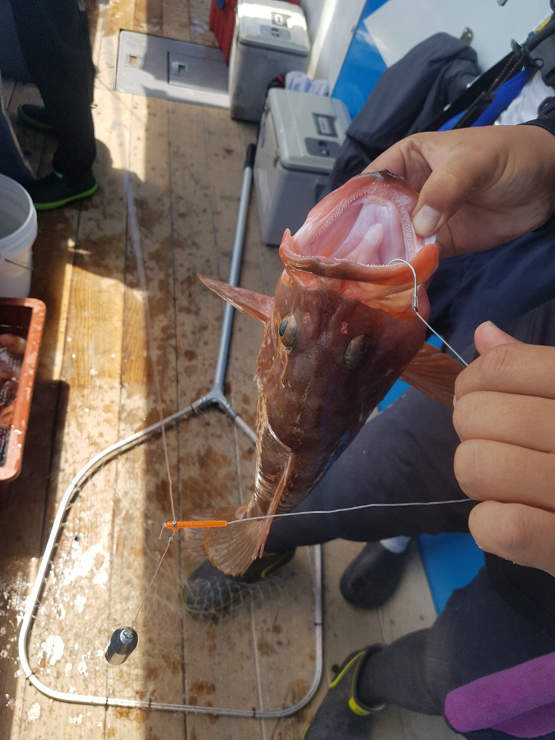 한시간쯤 가서 처음으로 바다 위에 배가 섰고 선장의 신호에 맞춰 낚시대를 들었다. 오늘 가장 많이 본 어류는 쏨뱅이였다. 쏨뱅이는 횟감, 튀김, 탕으로도 인기가 좋은 팔방미인이라고 했다.