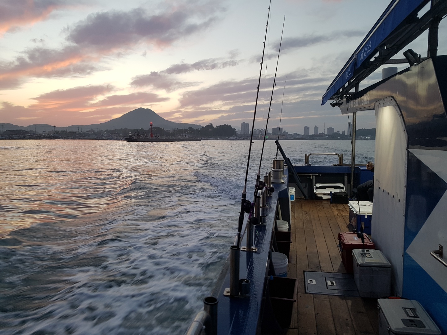 보라, 주황, 파랑으로 물든 하늘을 보고 있으니 마음속이 뻥 뚫리는 기분이 들었다. 이렇게 생긴 배 양쪽에서 자리를 잡고 선장의 마이크소리에 맞춰 낚시대를 들거니 내려두거니 하는 방식으로 즐거운 시간을 가졌다.
