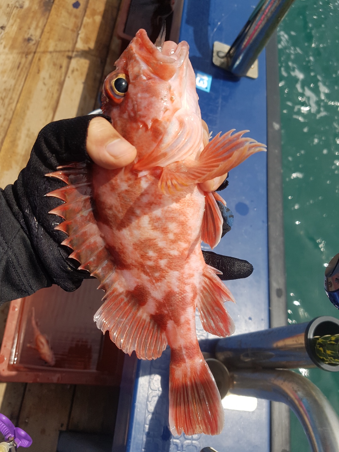 한시간쯤 가서 처음으로 바다 위에 배가 섰고 선장의 신호에 맞춰 낚시대를 들었다. 오늘 가장 많이 본 어류는 쏨뱅이였다. 쏨뱅이는 횟감, 튀김, 탕으로도 인기가 좋은 팔방미인이라고 했다.