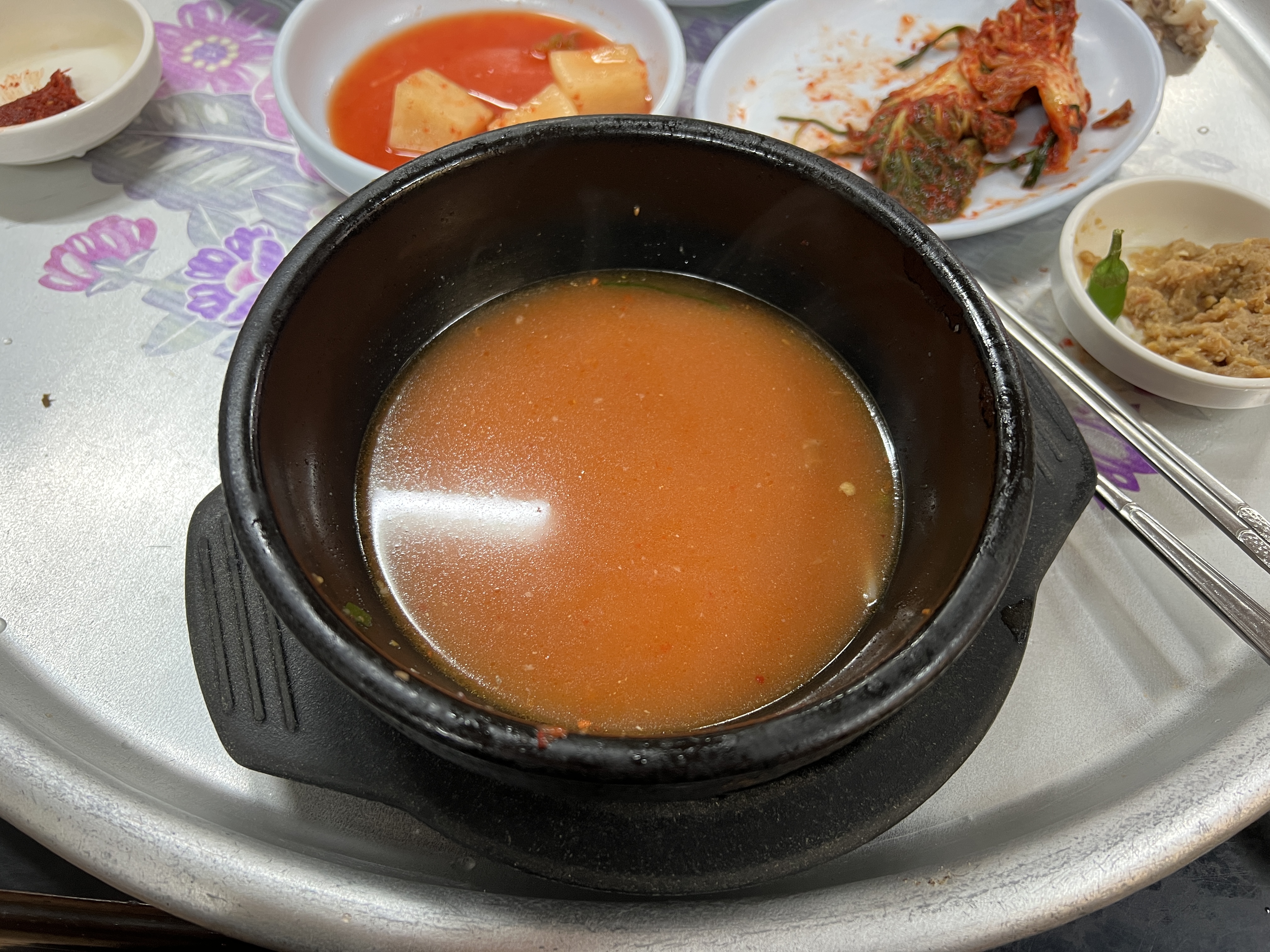 국물은 매워서 못 마셨지만 깨끗이 비웠군요! 혼자 온 5천원짜리 손님에게도 이렇게 한상 가득 차려주는 사장 아주머니의 인심이 돋보이는 식당이었습니다. 모녀 지간에 운영하는 것 같아서 보기에도 좋았고요. 다음에는 국밥 먹으러 한번 가보려고요. :)