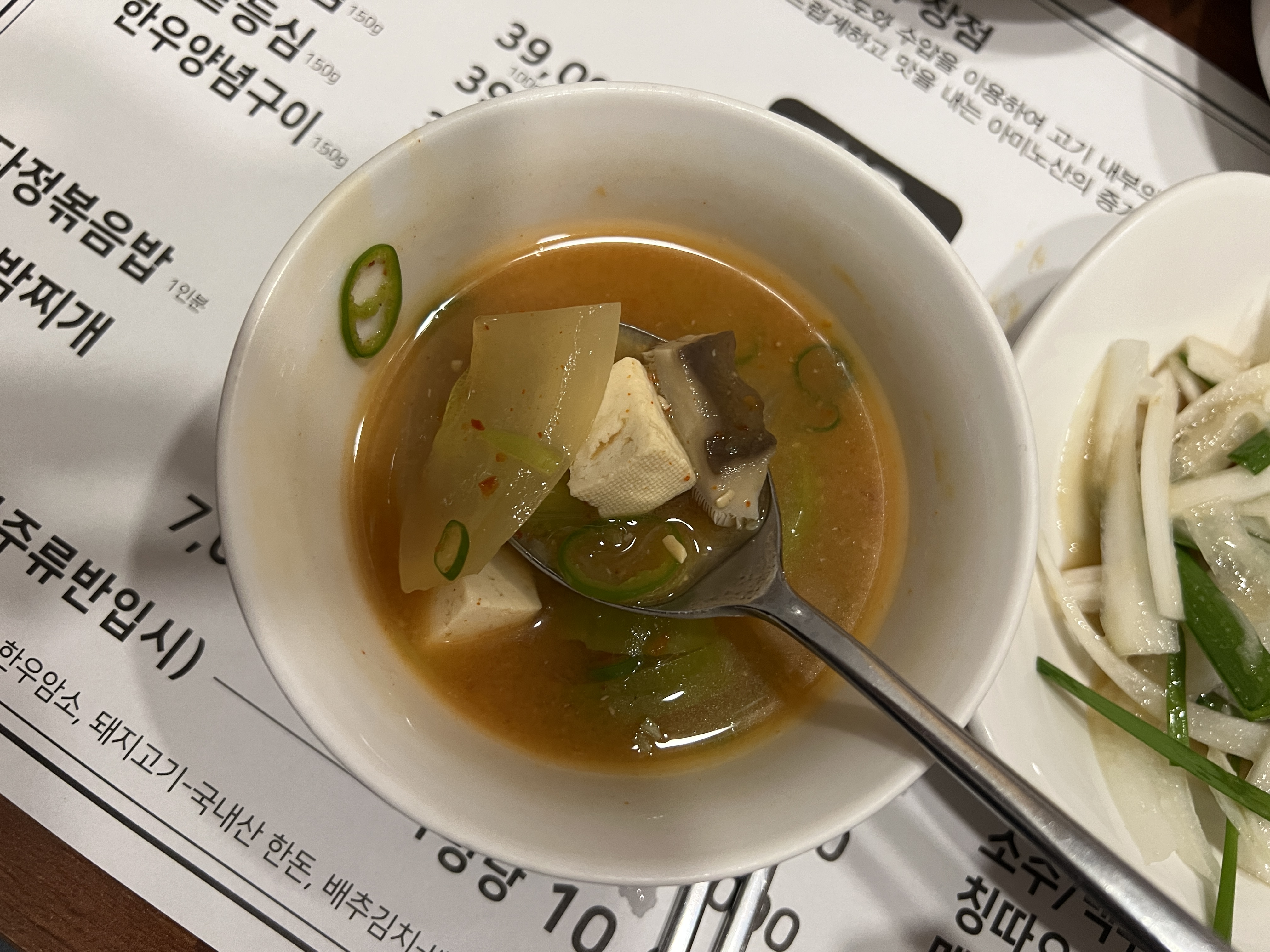 종지에 나온 된장국이 너무 맛있어서 추가로 된장국을 하나 시켰다. 여기 된장국 진짜 JMT니까 꼭 드셔보시길... 목포에 갈 일 있으시거나 사신다면 다정식육식당 강력하게 추천!