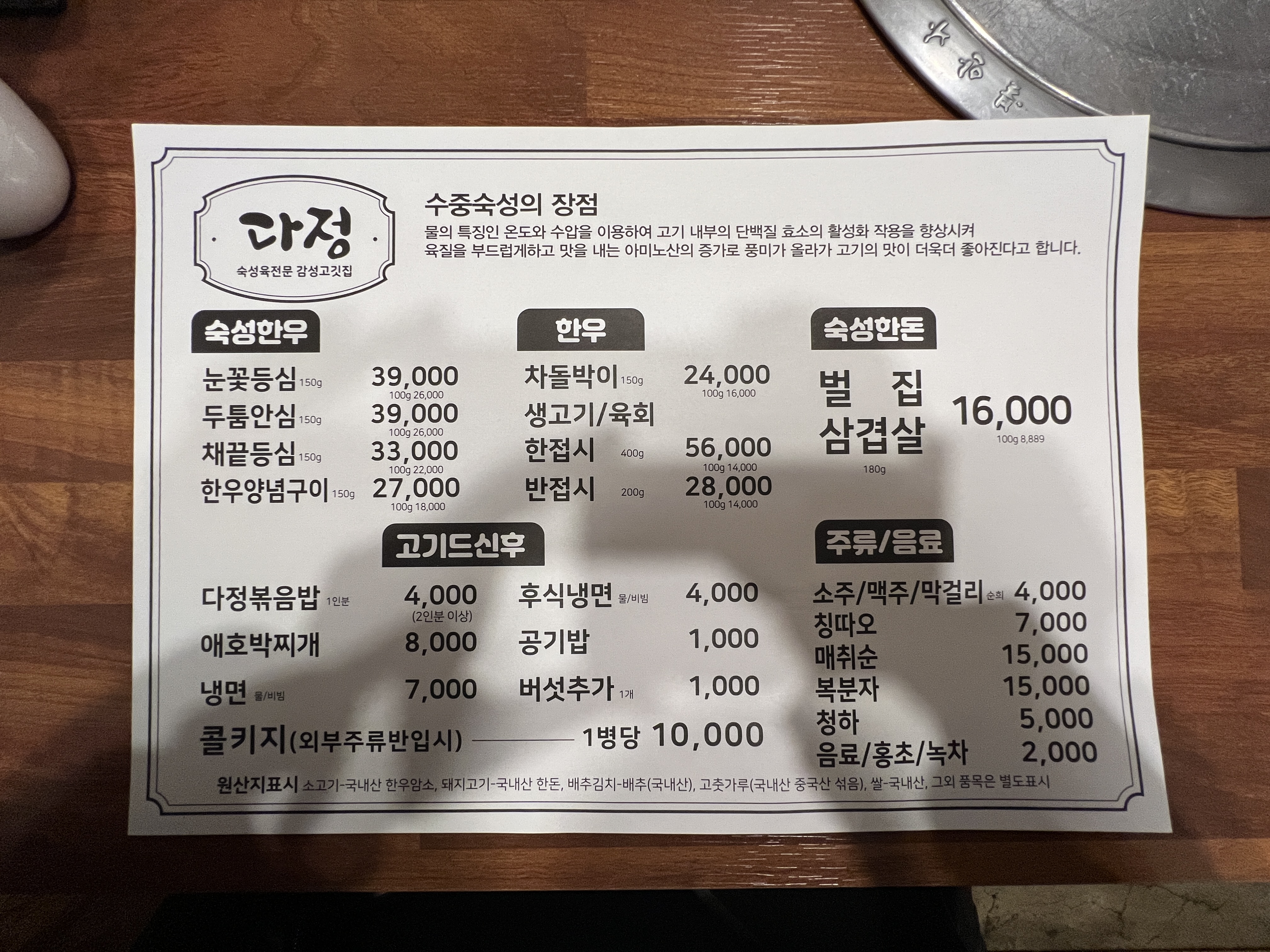 다정식육식당 앞에 도착했다. 수중숙성을 한다고 전해지는데 수중숙성을 하든 공중숙성을 하든 맛만 있으면 된다. ㅋㅋ