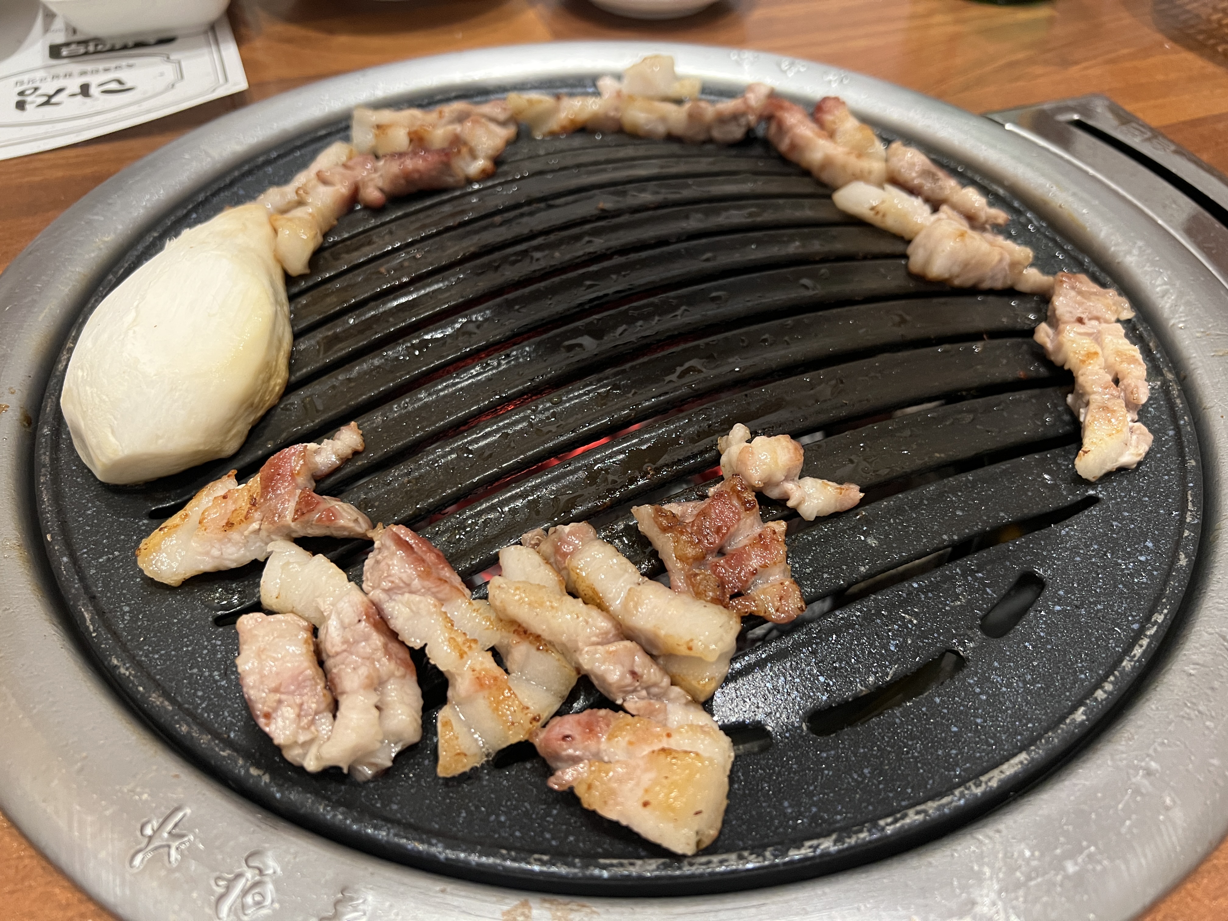 지인은 나보다 성격도 10배 급하지만 배도 10배 더 나왔다. 지인이 맛이 궁금하다며 벌집삼겹살도 주문했다.