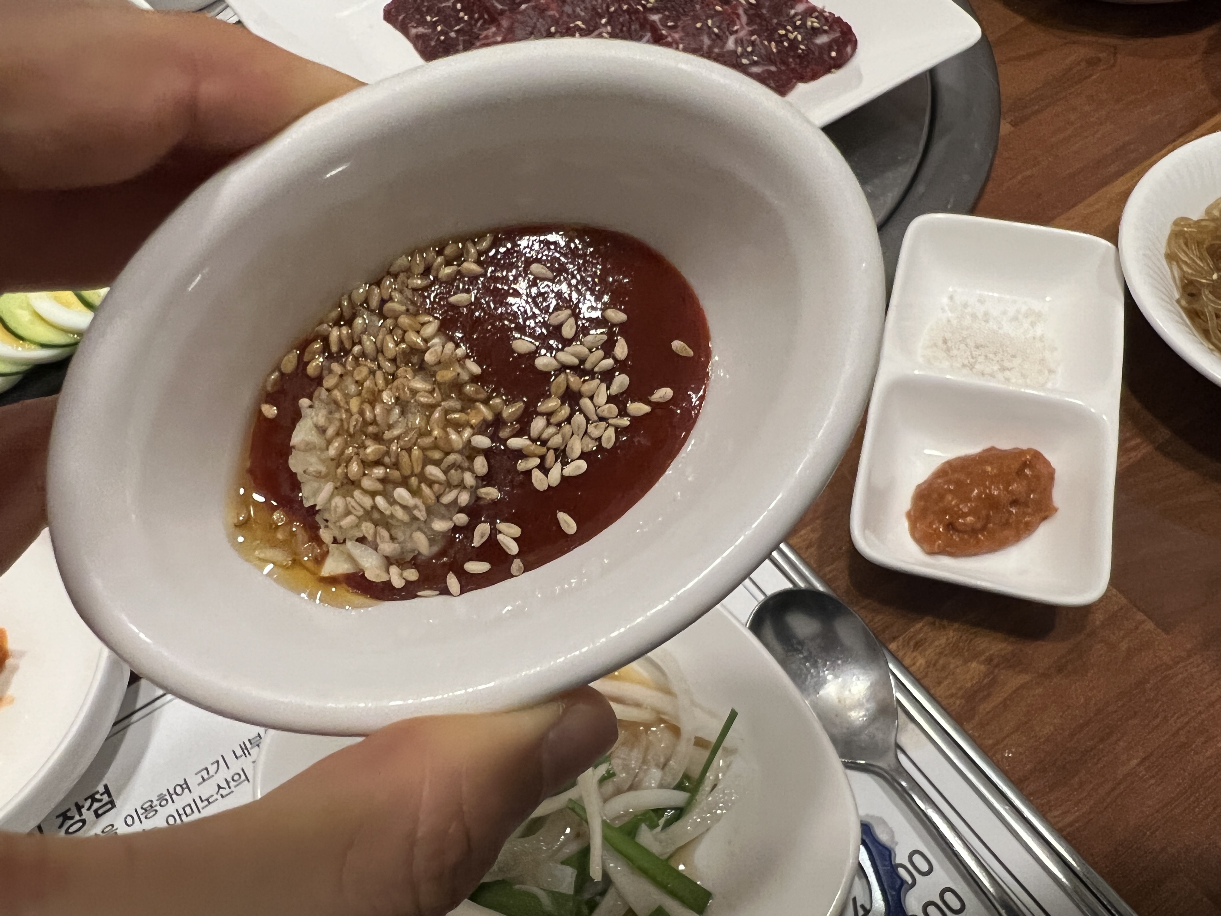 생고기에 찍어먹는 양념장이 맘에 들었다. 이거 레시피 알고 싶드아.