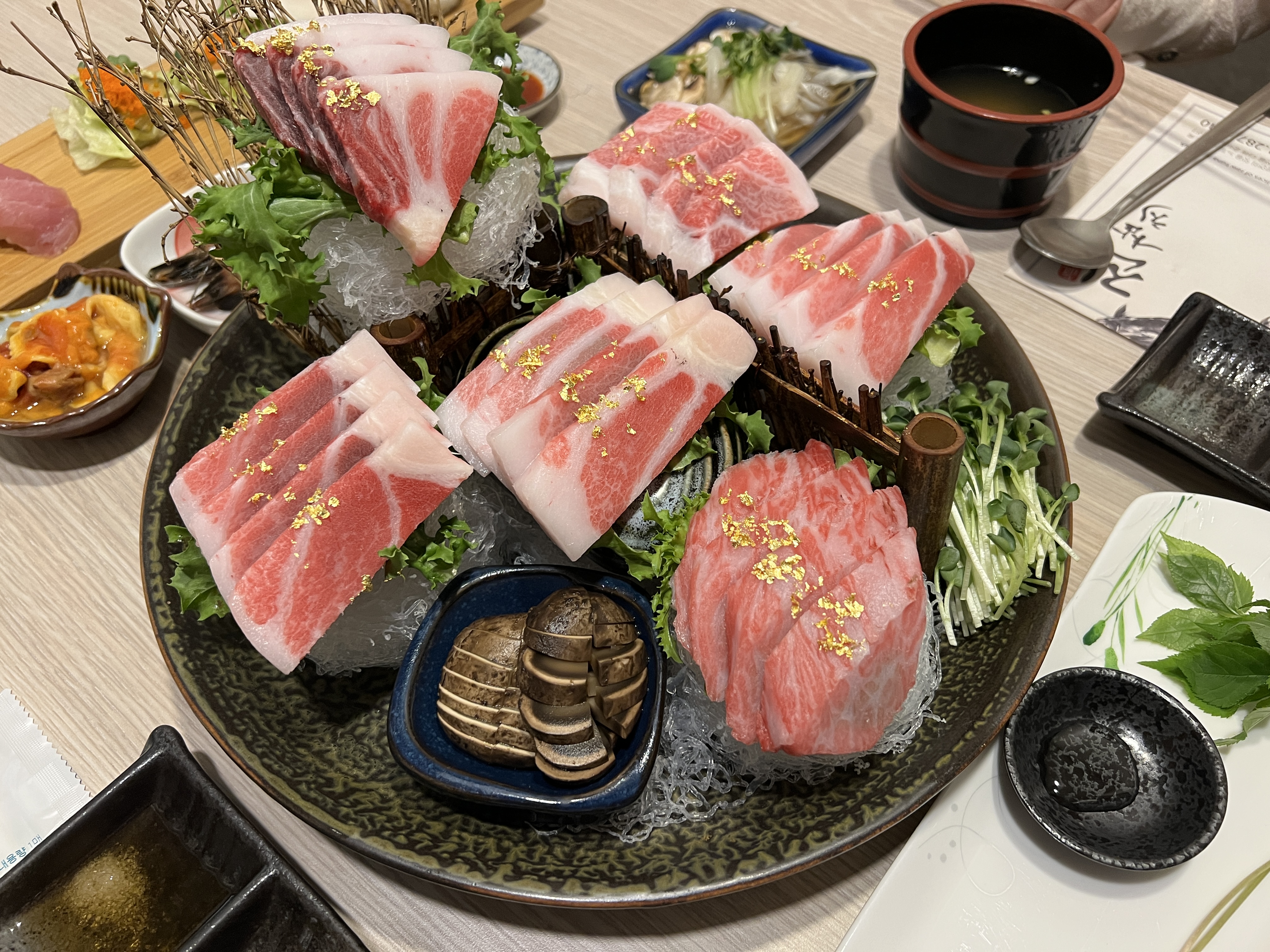 최근 광주와 목포에서 꽤 알려진 참치 맛집을 연달아 방문하고 있다. 아는 누님이 참치를 좋아해서 같이 가자고 하여 매번 공짜로 비싼 참치를 얻어 먹는다. 태어나서 평생 먹은 참치보다 최근 두달간 먹은 참치가 훨씬 많다는 건.. 안 비밀.. 이번에는 누님이 최고의 참치 맛집으로 치는 목포 진참치에 다녀왔다. 우리는 특1인 메뉴 2개를 시켰다. 1인 가격은 7.5만원이라 조금 비싼데.. 충분히 그 값어치를 했다.
