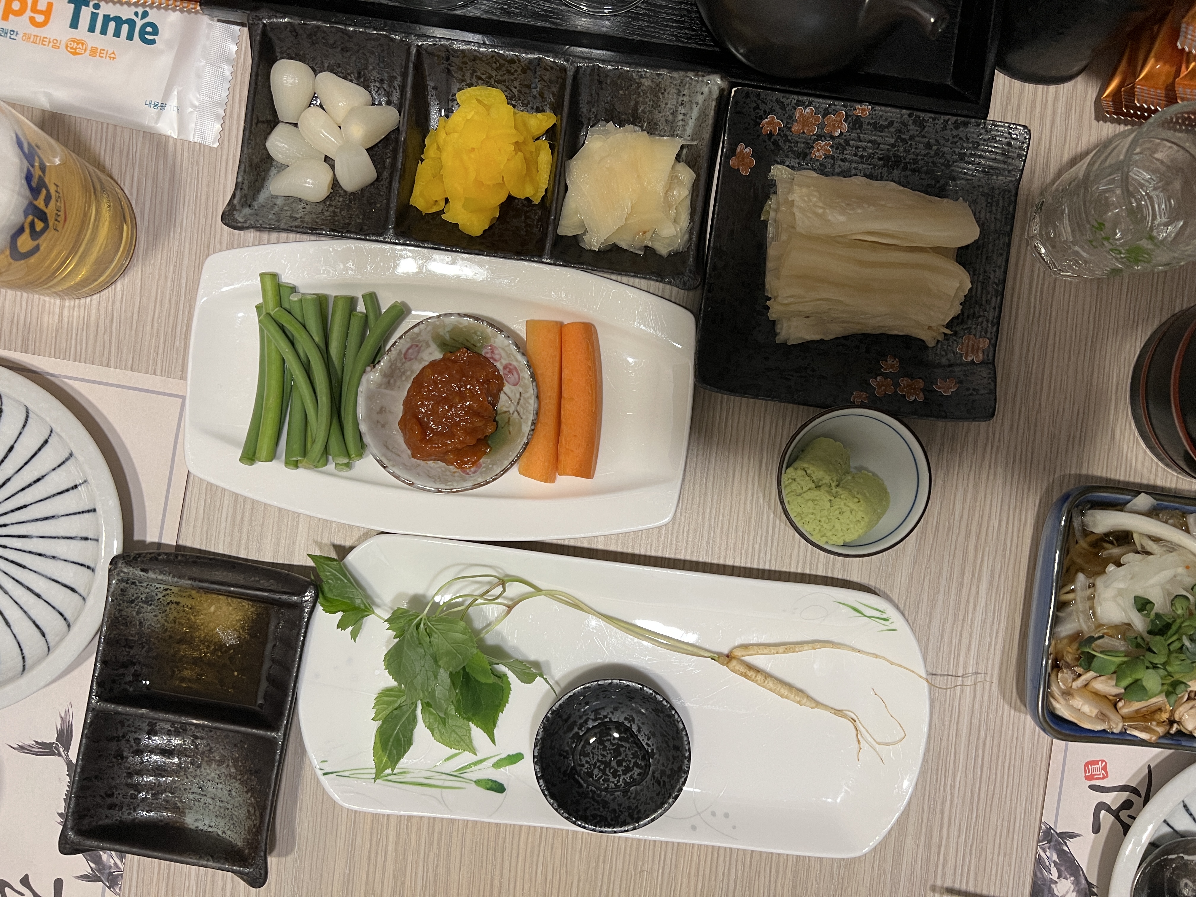 진참치에 방문해 직원분께 예약했다고 하니 룸으로 안내해주셨다. 오오.. 기본으로 깔아주는 스끼다시가 훌륭하다. 특히 콘스프 같은 인스턴트 식품이 없어서 만족스러웠다는 거!