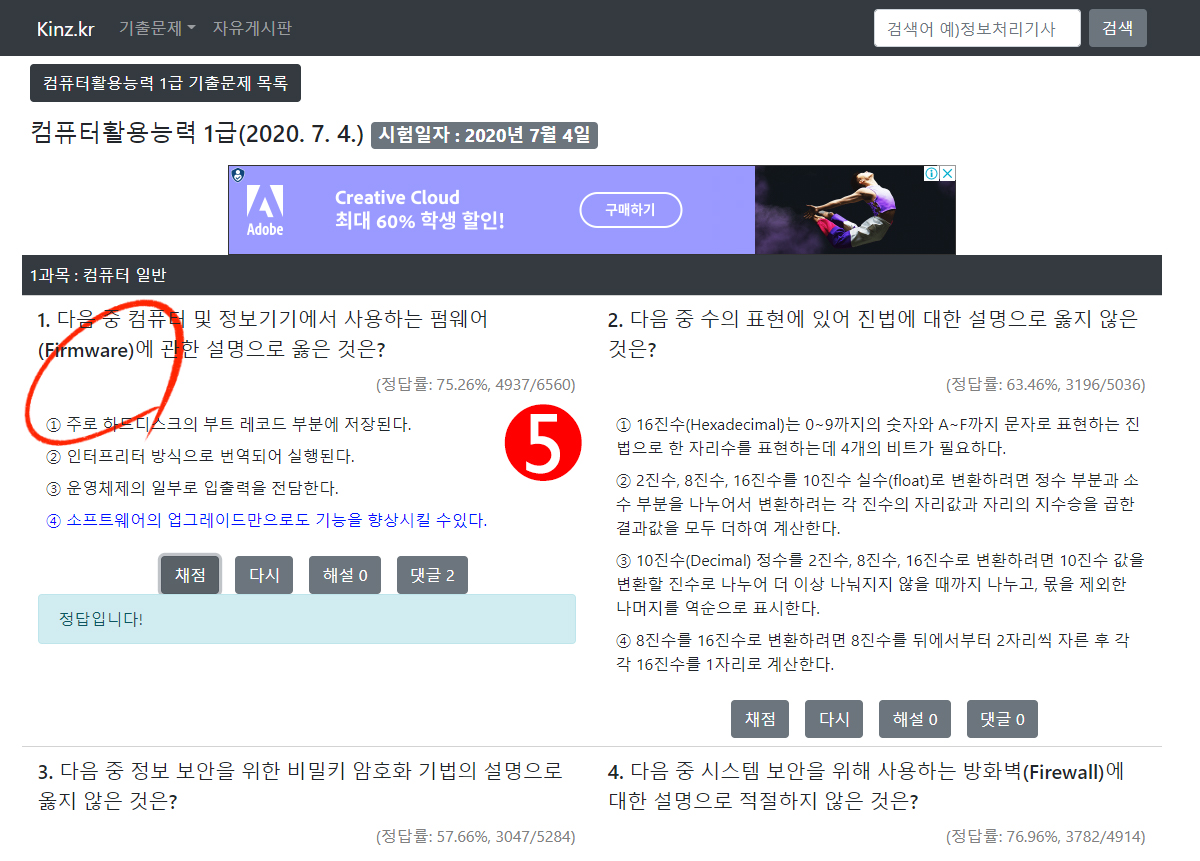 최근 국가 자격증을 준비하면서 종종 기출문제를 찾아보았다. 과거에 소개했던 유명 기출문제 사이트 CBT가 있는데 Kinz라는 사이트를 새롭게 발견하여 소개한다. 자격증이라는 게 10년치 기출문제를 두어번 풀면 대부분 커트라인을 넘겨 합격한다고들 하는데 최근 회사에 다니면서 퇴근 후와 주말에 존나게 기출문제를 풀고 오답노트를 정리했던 나는 예외였다. 어제 치룬 자격증 필기 시험에서 7점 차이로 낙방한 것. 1, 2점 차이로 붙고 떨어지는 자격증 시험에서 7점 차는 사실 공부량이 부족했다는 걸 의미한다. 그래서 생각해봤다. "나 정말 공부 안 했어?". 아무리 생각해도 존나게 열심히 했는데 왜 떨어진 걸까? 생각해보니 2가지 변명이 떠올랐다.