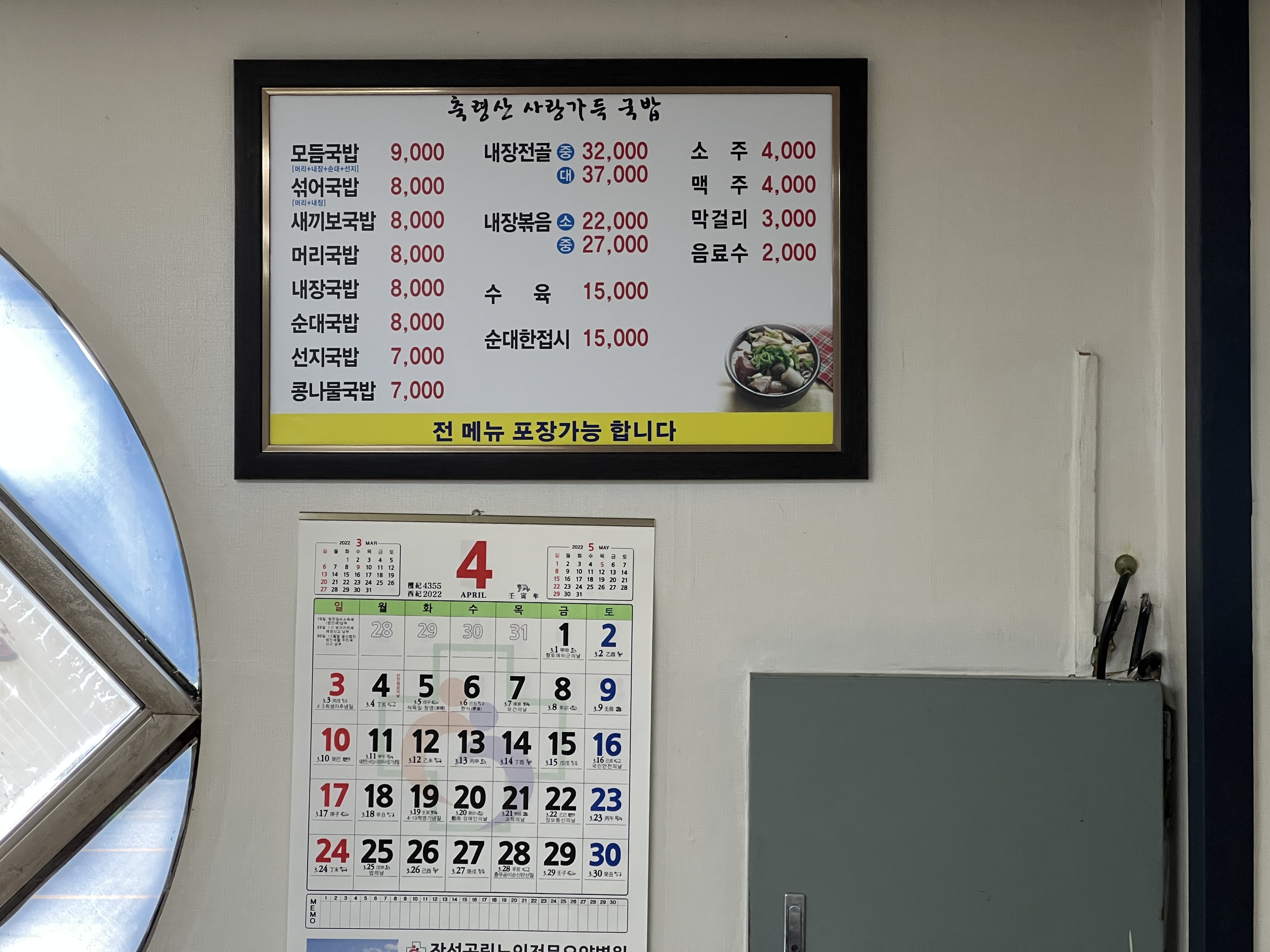 2022년 4월 23일 현재 메뉴와 가격은 아래와 같다. 우리는 새끼보국밥 2인분을 시켰다.