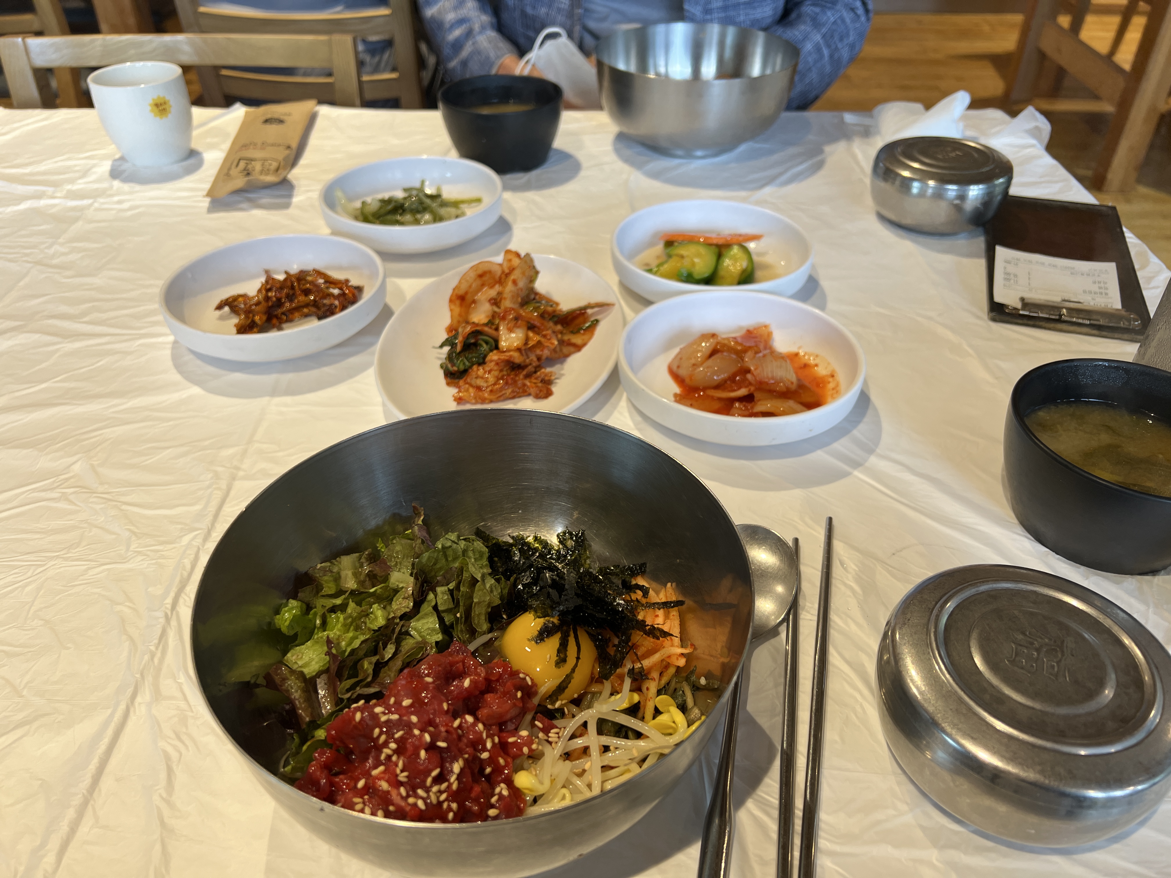 아버지는 익비(익힌 소고기 비빔밥), 나는 생비(생고기 비빔밥)을 주문했다. 고기 먹으러 오는 사람도 많다고 하는데 비싸서 아직 못 먹어봤다. ㅎ.ㅎ; 나중에는 떡국을 먹어봐야지.