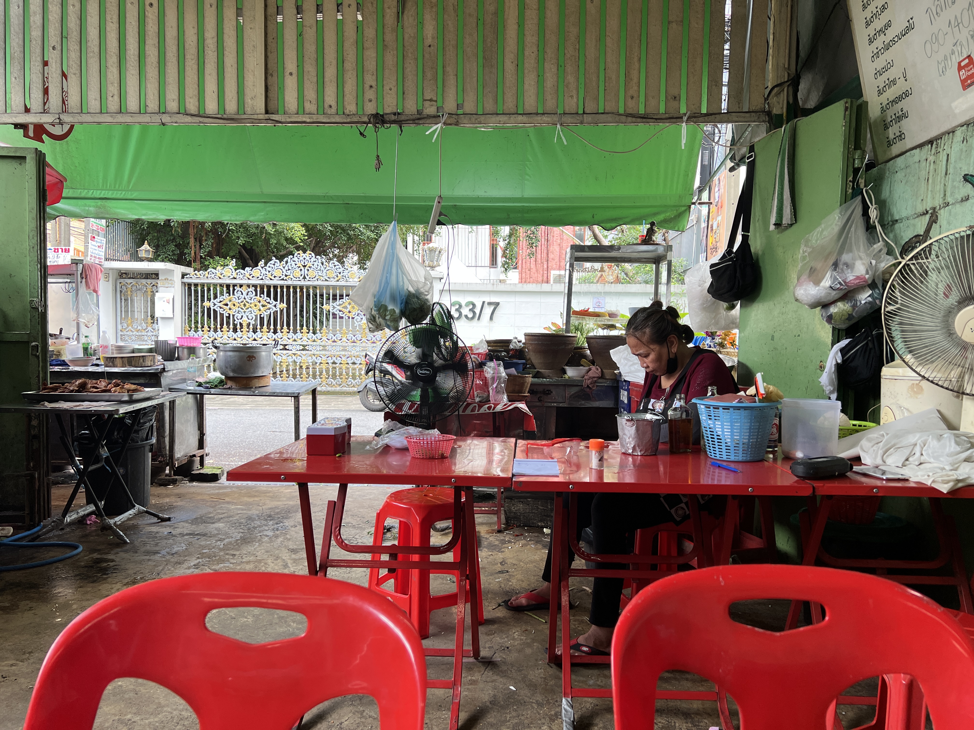 식사시간을 피해서 방문했는데 한 테이블에만 손님이 있어서 좋았다. 여기가 쏨땀제쏘 맞냐고 아주머니께 물었더니 맞다고 고개를 끄덕이며 웃었다. 위생은 조금 아쉽지만 뭐 어떠하리? 이런 후줄근한 분위기가 태국을 찾는 이유 중에 하나인 걸!
