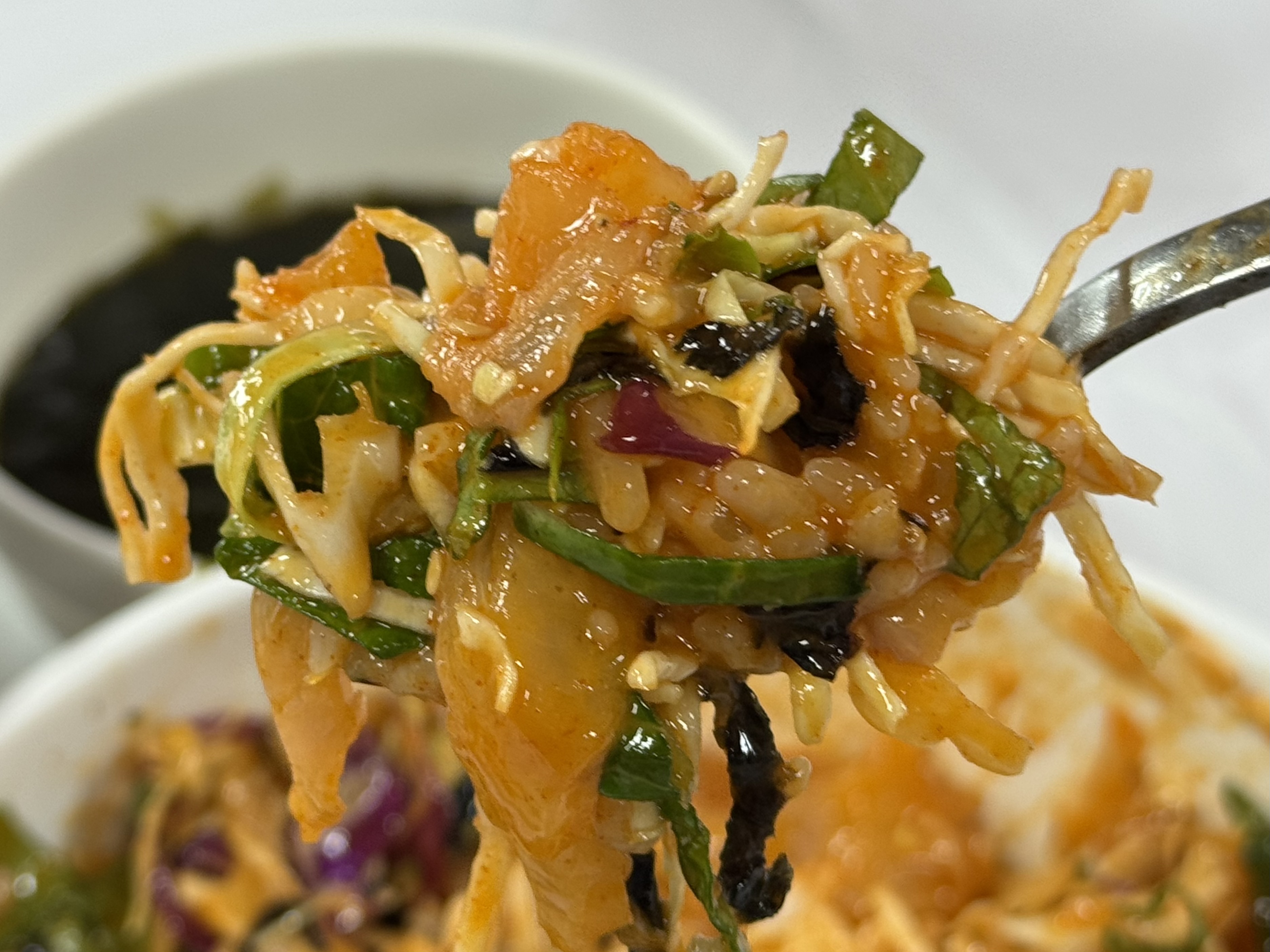 물회와 회덮밥을 살짝 들춰보니 회가 뭉텅이로 들어가 있어서 기뻤다. 도시에서는 보기 힘든 비주얼이다. 육지에서는 최소 2만원 이상 받겠지..