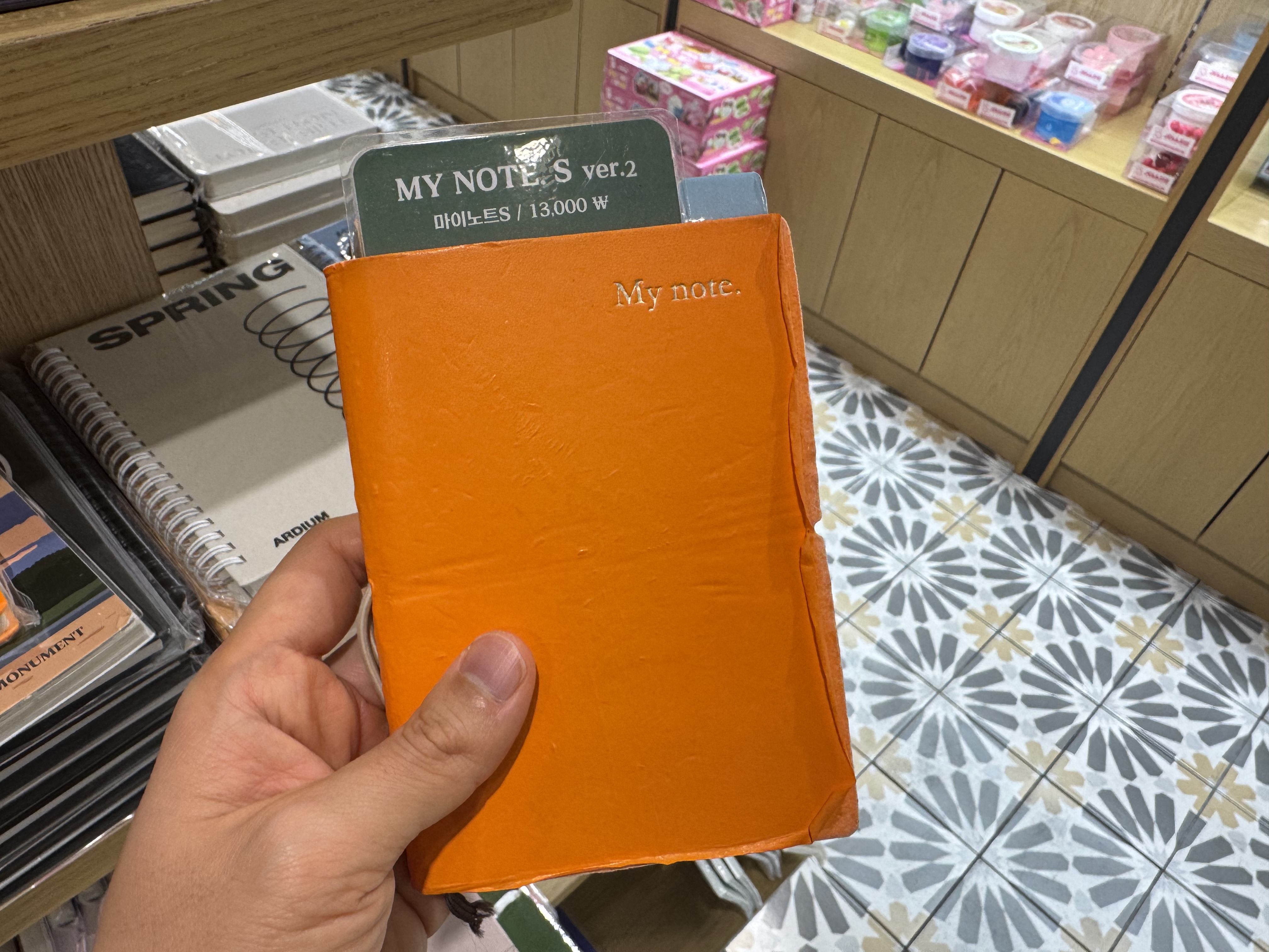 문구 코너에서 수첩 하나 살 요량으로 구경하다 요녀석을 봤다. 오렌지색으로 앙증맞게 생겼는데 너무 맘에 들었다. 쨍한 오렌지 컬러의 색감은 물론이고 촉감, 내지, 바인딩 끈까지 뭐하나 빠지는 게 없었다.