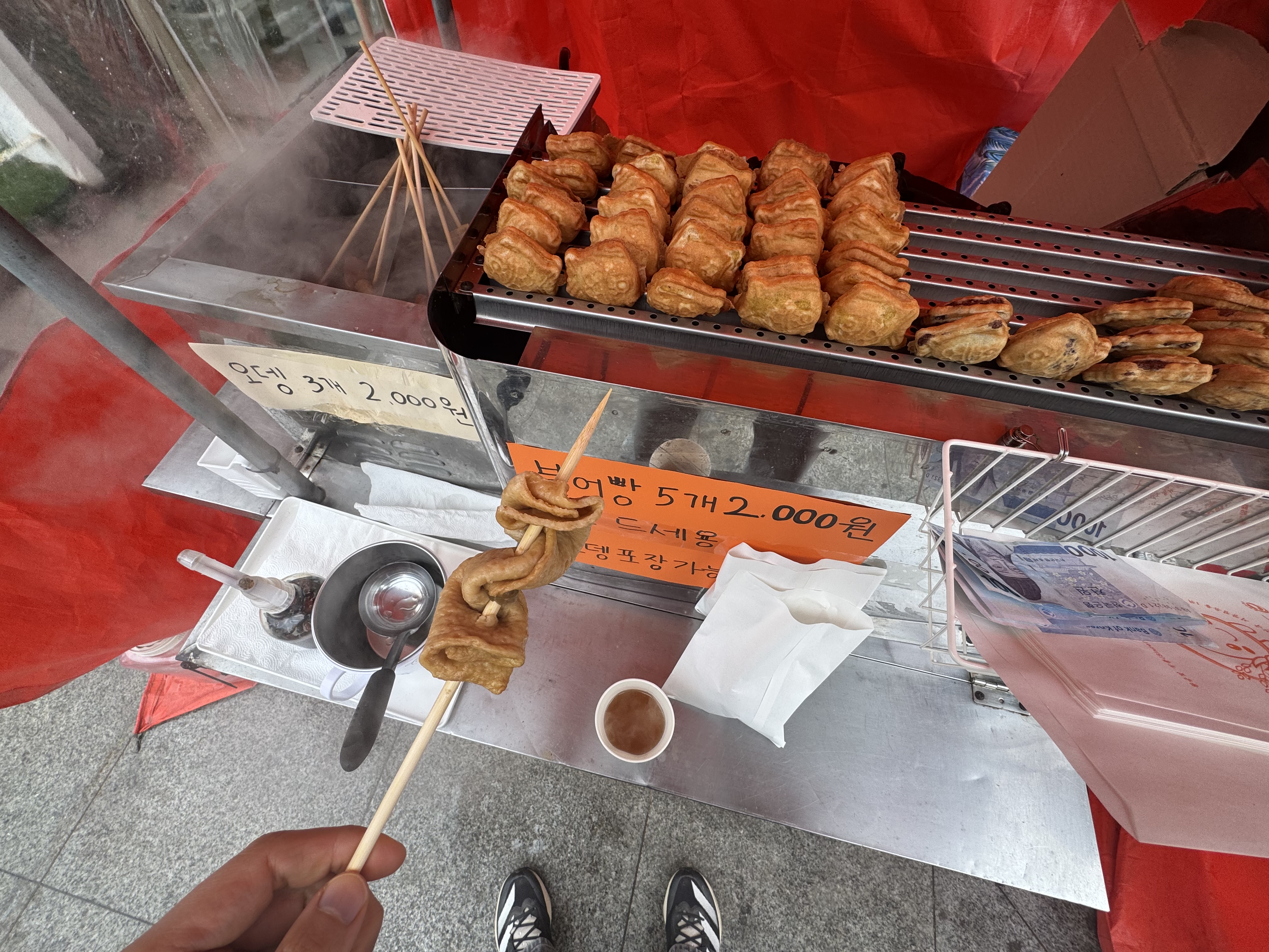 점심은 럭셔리하게 붕어빵과 오뎅을 먹었다. 붕어빵이 크기는 작은데 맛있었다. 오뎅은 말해 뭐해. 광주 날씨가 엄청 추웠는데 오뎅과 오뎅국물을 먹으니 따뜻하이~ 직이네? ㅋ.ㅋ 붕어빵 5개랑 오뎅 3개를 먹어도 4천원이니까 가성비도 좋았다. 부모님 드릴려고 붕어빵은 한개 더 샀다.