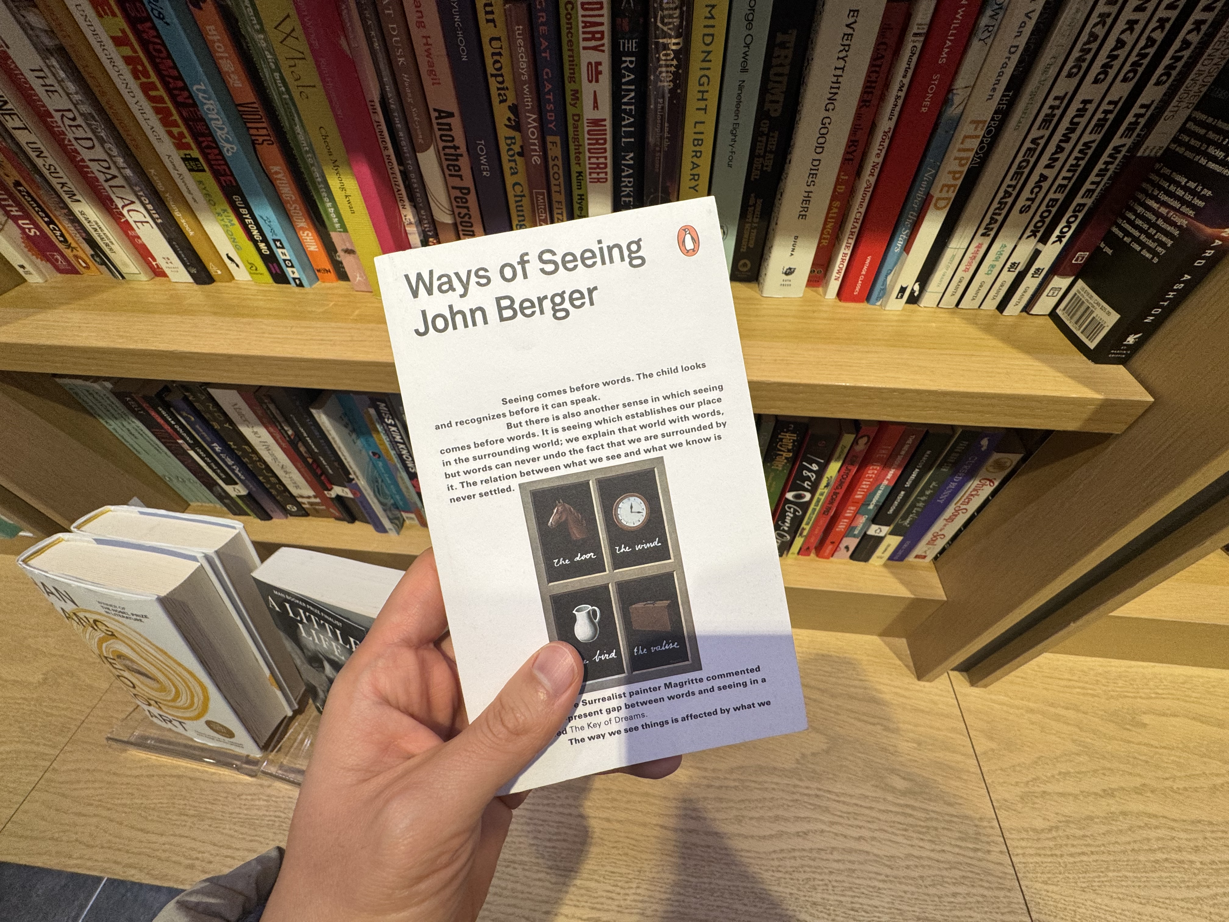 교보문고 상무점에도 원서가 적게 비치돼 있었다. 광화문 교보문고에는 원서 많은데.. 그러다 반가운 책을 발견했다. 미술 비평가인 존 버거의 책이다. 전통적인 예술의 시선에서 벗어나 이미지에 숨은 사회 권력을 추적하는 예술 비평서다. 평소 미술작품(전시)과 영어를 좋아한다면 추천. 내가 찾던 원서는 역시 없었다. 교보문고 상무점이 보유한 원서가 총 300권 내외인 것 같았다. 쭉 한번 둘러보고 문구 코너로 향했다.