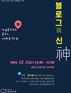 블로그교육9 6월 신세계아카데미 의정부점 블로그 강의 일정 안녕하세요! 블로그 강사 Zet, 장두현입니다. 6월 신세계아카데미에서 총 2차례의 블로그 강의와 3차례의 유튜브 강의를 합니다. 구로구청 기자단 강의 현장에서 제 강의마다 참석하고 싶으시다고 하신 분이 계셨는데요. 그 분 연락처를 모르니 강의소식을 알려드릴 방법이 없네요. 신세계 고객이라면 누구나 참석할 수 있으며 강의료도 무지 저렴하기 때문에 부담없이 강의를 들을 수 있는 기회입니다. 신세계백화점에서 뵙겠습니다. :) * 강의 신청하기 아래 일정 옆에 바로 강의신청 페이지로 접속하는 주소를 링크형식으로 삽입해뒀어요. 클릭하시고 수강신청을 진행하시면 됩니다. * 강의 일정 1. 신세계 의정부점6월 23일(금) 저녁 7:30 https://goo.gl/r5gDS7 ※ 의정부점에서 강의를 각각 1회씩 진행.. 2017. 5. 2. 구로구청 기자단 대상 블로그 강의 후기 어제 오전 10시에 구로구청에서 주민 기자단분들을 대상으로 블로그 강의를 했습니다. 블로그에 글을 쓸 때의 노하우, 홍보 방법, 기자단 필수 스마트폰 앱, 검색엔진최적화에 관한 내용까지 저의 경험을 바탕으로 약 1시간 40분 정도 진행했습니다. 강사인 저 역시 현재 여러 기자단으로 활동하고 있기 때문에 강의를 듣는 기자단의 입장에서 이야기할 수 있는 내용이 많았지요. 실제 강사라는 타이틀을 달고 다니는 사람들 중에는 블로그를 자기 강의 홍보용으로만 활용하거나 다른 쪽에 전문지식으로 가지고 있고 블로그는 잘 모르면서 사람들을 속이고 다니는 사짜들이 많거든요. 오랜 기간 블로그를 운영해온 분들이 많아서 그런지 통하는 부분이 많아서 강사인 저 역시도 즐거운 시간을 보냈습니다. 오전에 명함을 30장 챙겨서 나갔.. 2017. 4. 28. 구로구청 주민기자 대상 블로그 활용 교육 강의 구로구청의 제안으로 블로그 강의를 합니다. 주민기자분들을 대상으로 블로그 활용교육을 하게 됐는데요. 2시간 정도의 시간동안 제가 경험한 것들을 바탕으로 도움이 될 만한 이야기를 하고 올 계획입니다. 티스토리에서는 개인 블로그를, 네이버에서는 기업블로그를, 최근에는 네이버에서 여행블로그를 운영하며 치열한 고민을 해왔기 때문에 실질적으로 써먹을 수 있는 유익한 강의가 될 겁니다. 이번 강의는 구청에서 연락을 받아 특정 그룹을 대상으로 하는 강의이지만 개인 혹은 소규모 그룹으로도 강의를 하기 때문에 블로그 활용을 어떻게 해야 할지 조언을 구하고 싶다면 언제든지 연락(bloggertip@gmail.com)주세요. * 강사 소개 http://book.naver.com/bookdb/book_detail.nhn?bi.. 2017. 4. 7. 삼산도서관에서 '블로그의 신' 블로그 강의합니다 인천 부평구 삼산도서관에서 오랜만에 블로그 강의를 합니다. 12월 5일 토요일 오후 3:30분 부터 5:30분 까지 2시간 동안 블로그를 즐기는 방법에 대해 이야기할 예정입니다. 방콕 출장 다녀온 뒤로 처음으로 강의하네요. 아직 신청 마감 기한(12월 3일)까지 시간이 남아있으니 관심있는 독자 및 방문자분들은 신청해보세요. 날씨가 춥습니다. 옷 따뜻하게 입으시고, 감기 걸리지 않게 조심하세요. 삼산도서관 강의 '블로그의 신' 신청하기 http://goo.gl/EKtHO5 2015. 11. 29. 이전 1 2 다음