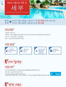 티웨이항공 세부 티나는 여행단 7기 모집 티웨이항공이 티나는 여행단 7기를 모집하고 있습니다. 선발된 2인의 블로거는 2박 4일 일정으로 세부를 여행하고 돌아와 7개 이상의 여행후기 포스팅을 하게 됩니다. 왕복항공권(대구-세부) 1매, 경비 30만원을 지원하는 빵빵한 혜택 때문인지 벌써부터 경쟁이 치열하군요. 해외여행에 관심있는 독자분이라면 얼른 지원해보세요! 티나는 여행단 7기 지원하기 https://www.twayair.com/together/event/getEventInProgress.do?eventSeq=394 2016. 11. 18.