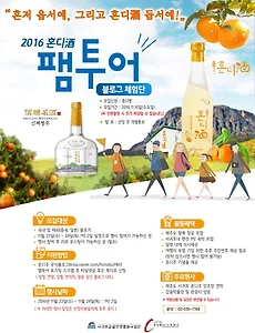 서귀포감귤주명품화사업단 혼디주 블로거 팸투어 모집 서귀포 감귤 발효주 혼디주 블로거 팸투어를 모집합니다. 국내 및 해외 블로그를 활발하게 운영하는 분들 13명을 선정하여 11월 23일~24일 1박 2일 일정으로 혼디주 양조장을 견학하게 됩니다. 제주도 왕복 항공권, 서귀포 내 팬션 1박 숙박, 식사 제공, 기념품 등 다양한 혜택을 제공하는 팸투어 행사에 독자 여러분도 지원해 보세요! 팸투어 지원하기 http://blog.naver.com/hondiju/220861461771 2016. 11. 14.