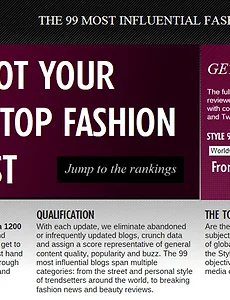 패션 블로그2 세계 최고의 패션 블로그 99 리스트 패션/뷰티 블로거들과 함께 한 행사 후에 패션 블로그에 대한 관심이 부쩍 늘었다. 국내 패션 블로그야 검색을 통해 찾기 쉽지만 해외 패션 블로그를 한 곳에 모아놓은 링크를 찾기란 쉽지 않다. Signature9에서 무려 1200개의 패션 블로그를 수작업으로 리뷰하고 그 중 99개의 패션 블로그를 선정했다. 구글의 페이지랭크, 도메인 링크, IP 링크, 페이스북 활동 등 다양한 기준을 통해 산출한 점수도 공개되어 있다. 패션 블로그 리스트 바로가기 http://www.signature9.com/style-99#rankings ☞ 아래쪽으로 내려가면 10개의 가장 영향력있는 스타일 블로그가 있다. 블로거팁닷컴에서 소개한 The Sartorialist가 당당히 1위에 랭크됐다. ☞ 8위에 랭크된 Garance.. 2011. 10. 14. SARTORIALIST, 패션 블로그 아이디어 사토리얼리스트(The Satorialist)는 스콧 슈만이라는 사람의 패션 블로그입니다. 15년간 패션 업계에 몸을 담은 필자가 뉴욕 길거리에서 찍은 사람들의 사진을 공유하기 위해 블로그 운영을 시작했다고 합니다. 그의 블로그가 유명해지면서 남성잡지 GQ의 고정필자로 활약하며 전세계에 이름을 알립니다. 하루 평균 2만명이 넘는 사람들이 꾸준히 드나들고 있어요. 우리나라는 이미 베스트드레서와 같은 카페가 많은 인기를 얻으며 커뮤니티화 되어 있어 사토리얼리스트와 같은 블로그를 만드려면 남다른 노력이 필요할 것입니다. 타이틀 문구가 인상 깊네요. "Selected as one of Time Magazine's Top 100 Design Influencers". 우리나라에서도 하루빨리 세계적인 블로그가 나오기를.. 2009. 3. 31. 이전 1 다음