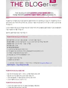 LG전자 커뮤니케이션 파트너 더블로거 9기 모집 삼성전자의 블루로거, SKT의 T리포터와 함께 3대 블로거 프로그램(혜택이 빵빵한 대기업 블로거 프로그램)으로 꼽히는 LG전자의 더 블로거가 9기를 모집하고 있습니다. 개인블로그와 SNS를 열정적으로 운영하고 있는 블로거, IT제품과 디지털 트렌드에 관심이 많은 블로거라면 지원할 수 있으며 12월 31일까지 지원하면 됩니다. 신제품 체험 프로그램 참여 기회, 경영진 간담회/신제품 발표회/전시/문화강좌 및 행사 초청 등 풍성한 혜택이 주어집니다. 우수활동자에 한해 CES, IFA 등 해외 가전박람회 참여 기회도 주어지기에 경쟁률이 치열할 것으로 예상되지만 늘 되는 사람만 되는 건 아니므로 부담 갖지 마시고 독자분들도 지원해보세요. 더블로거 9기 지원하기 http://social.lge.co.kr/lg_st.. 2014. 12. 23.